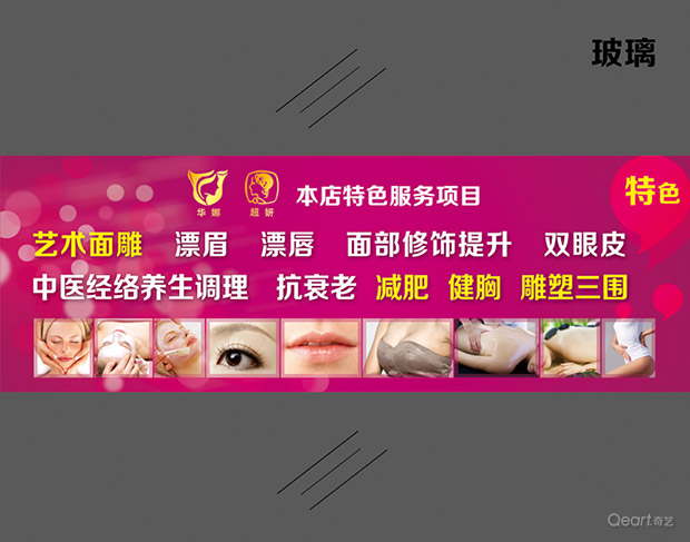 活动背景,活动展板,活动海报,玻璃贴字,X展架,易拉宝,美容院海报等