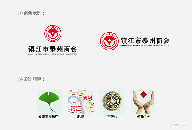 泰州商会的会徽以环形设计,一大一小两个同心环,象征着商会在社会各界的关心与支持下,团结镇江乃至天下泰商携手共进、拼搏共赢,为镇江与泰州两地的发展与繁荣做出积极贡献的崇高宗旨。 会徽以泰州市树“银杏”、泰州与镇江的纽带“江河”为基本设计元素,寓意着泰商秉承坚韧质朴、重信尚义、宽厚包容、团结奋进的信念必将在镇江开辟出广阔的发展前景和美好的未来。其中加入了形类似于古代商业钱币,凸显了商会立足经济发展的定位。 会徽中同样体现出手形依托的形态,寓意商会在未来的发展中将充分依托会员,脚踏实地的开展各项工作。标识中的圆形寓意天圆与和谐,象征着商会会员团结携手,共同发展。中英文名称的结合,充分彰显商会国际魅力。 会徽下部为水纹状设计,将镇江与泰州江河两岸融会贯通、和谐共一,寓意了商会必将打造成为泰州人交流、合作的纽带,创业发展的平台,同时还寓意了泰州商人在广袤、充满无限机遇的商海中大展身手,扬帆千里! 会徽采用代表积极、主动、开放、热情的红色为主体色,彰显泰商勇于进取、敢于拼搏的开拓精神,同时也蕴含了泰州商会倡导泰商内部之间以及与其他商会成员之间“竞合”的精神。